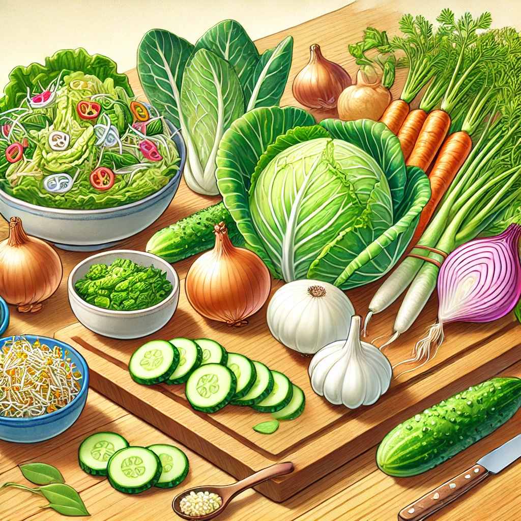 - 채소들은 가늘게 채 썰어 찬물에 담가 싱싱하게 만듭니다.