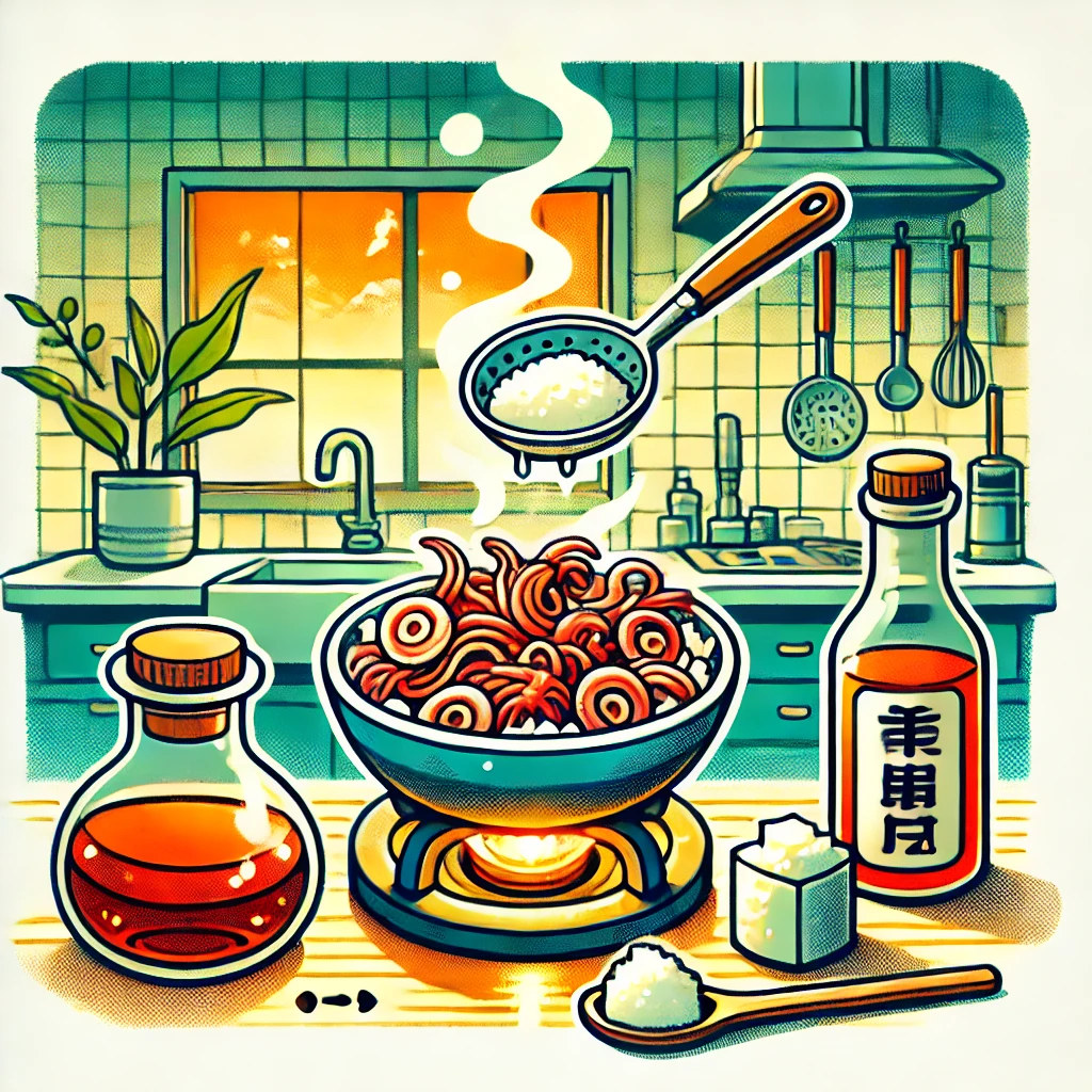 - 부드럽게 만들기: 미림과 설탕을 섞어 진미채를 부드럽게 한 뒤 전자레인지에 1분간 돌립니다.