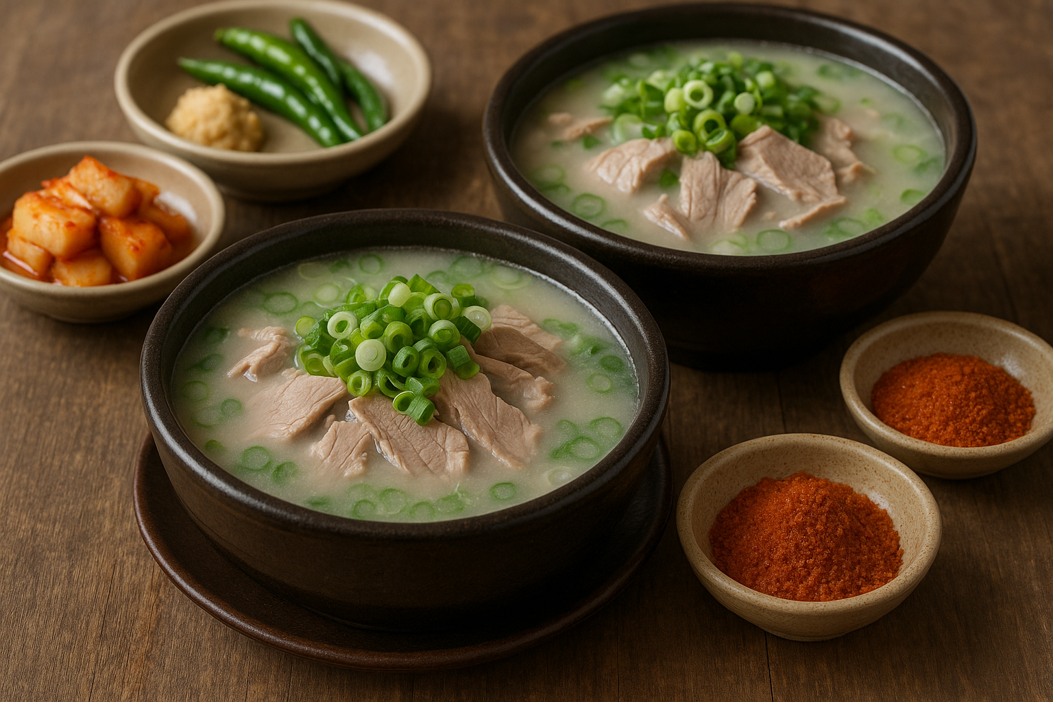 돼지국밥은 돼지고기와 뽀얀 육수, 부추와 다대기를 곁들여 먹는 부산 지역의 대표적인 국밥입니다. 깊은 맛의 육수와 담백한 고기, 칼칼한 양념이 어우러진 국민 보양식으로, 집에서도 충분히 만들 수 있습니다.
