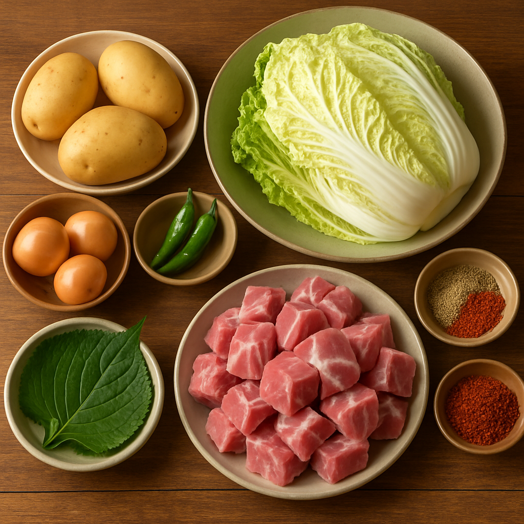 - 주재료: 순살 돼지고기, 감자, 우거지, 깻잎