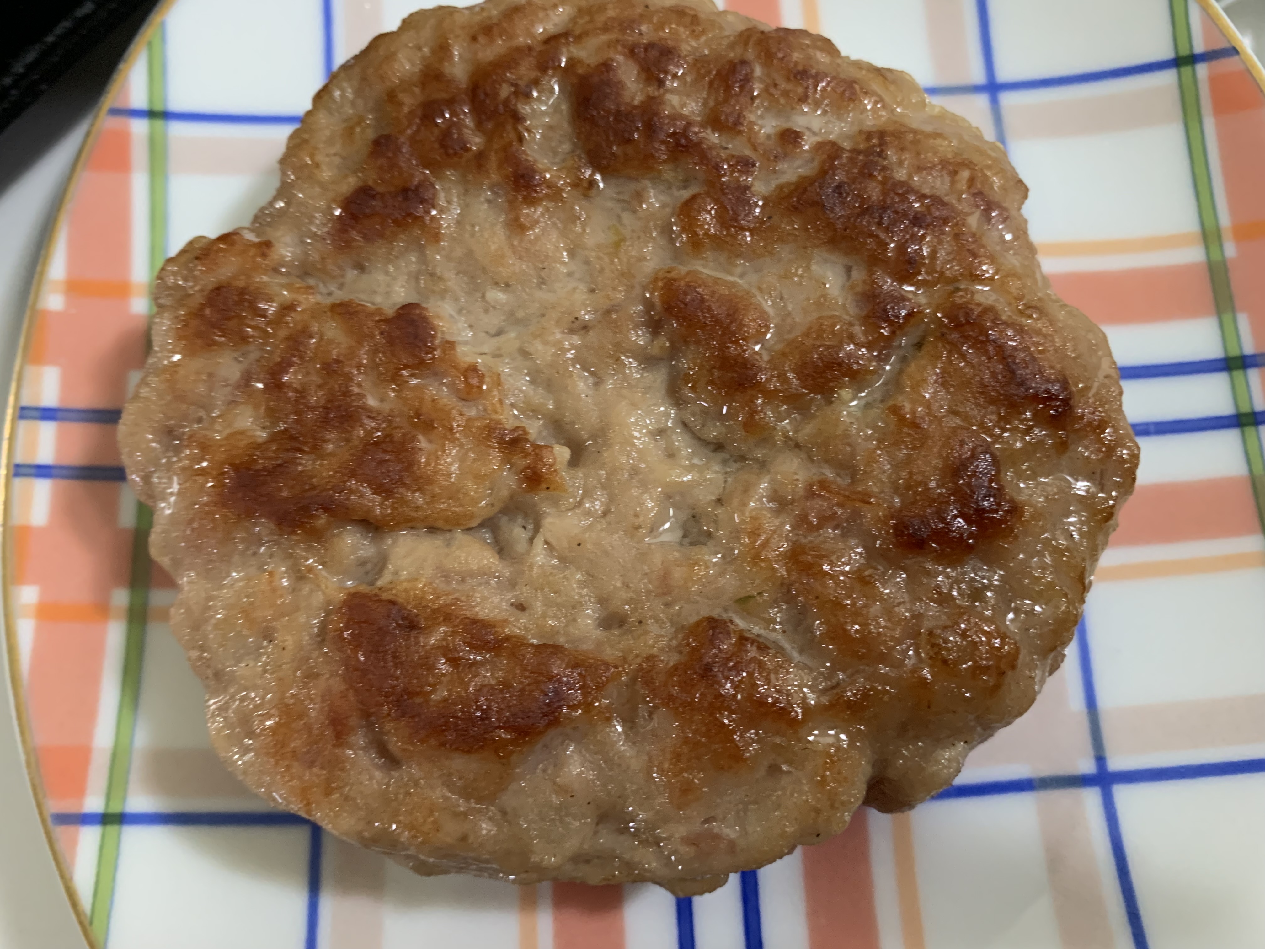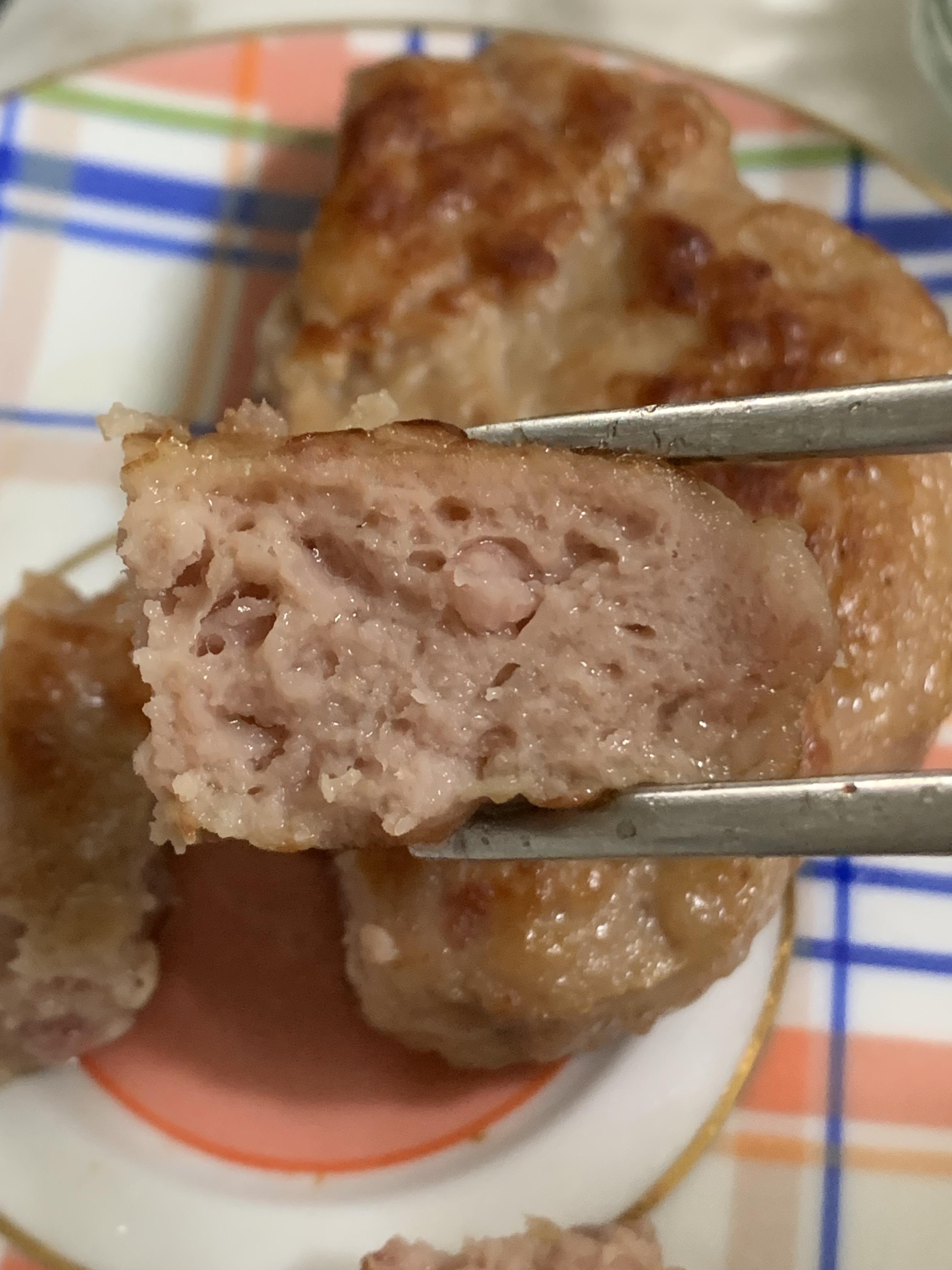 - 냉장고에서 꺼낸 떡갈비 형태로 만들어 주물러 팬에 올린다.