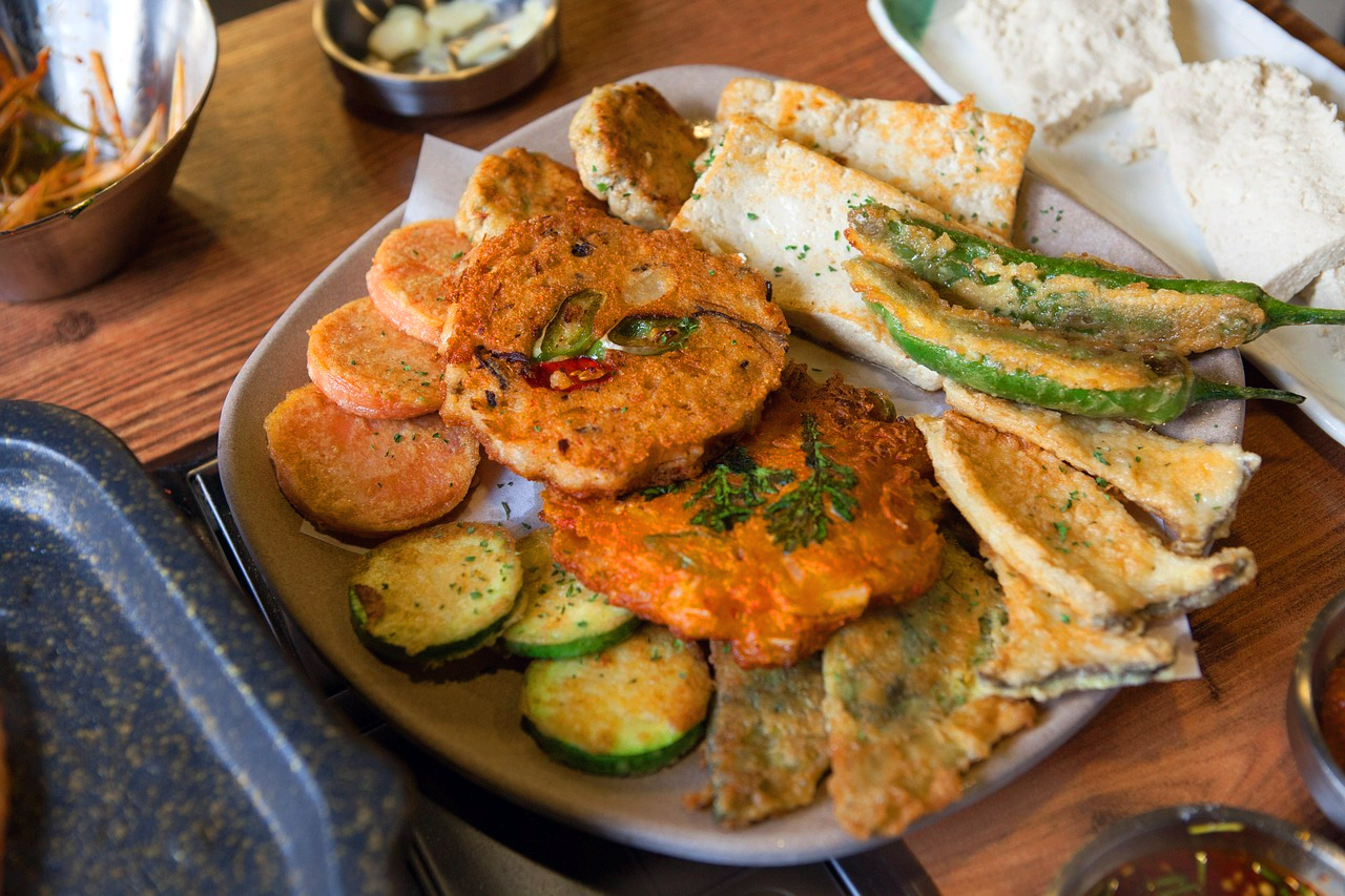 - 섞은 재료에 부침가루를 잘 발라주세요. 이때 너무 많이 묻지 않게 해주세요.